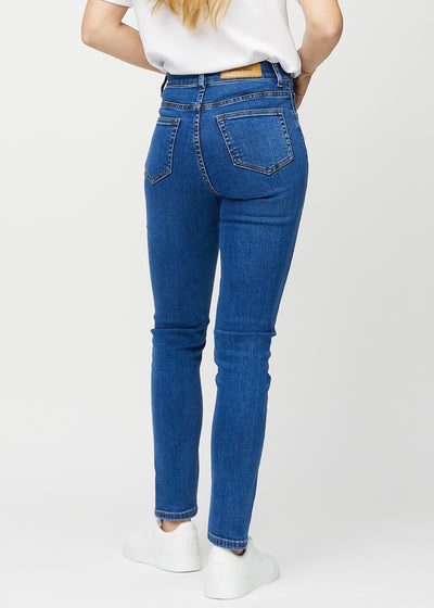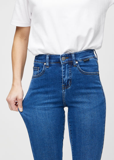 Perfect Jeans - Slim - Oceans are the perfect dark blue women's jeans in a beautiful denim look. We have developed denim in a completely new way with high quality and lots of comfort. Here you get a pair of slim fit jeans with all the details of classic denim, which are soft, stretchable and give you full freedom of movement. Our dark blue slim fit denim jeans are high-waisted and have two deep pockets both front and back. They are developed in a super stretchable material that retains the color and shape after use and wash. The dark blue denim jeans for women are the perfect jeans for both everyday and party.