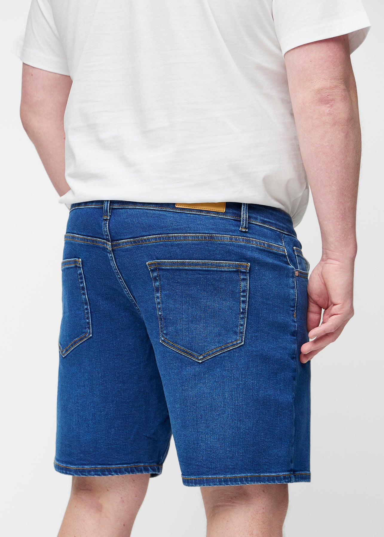 Dark blue denim shorts for men in the colour Oceans with a regular fit seen from the side on a plus-size model.