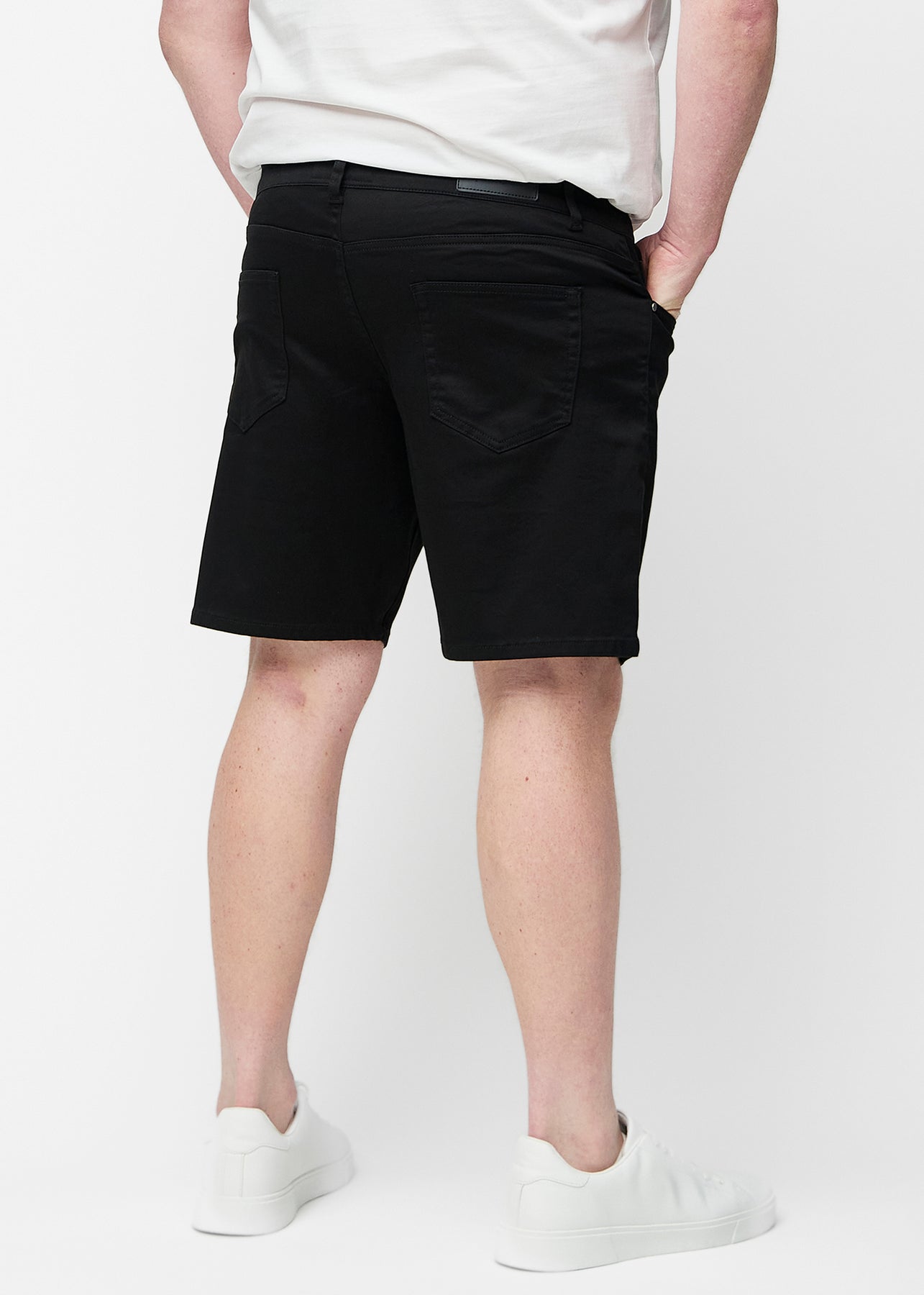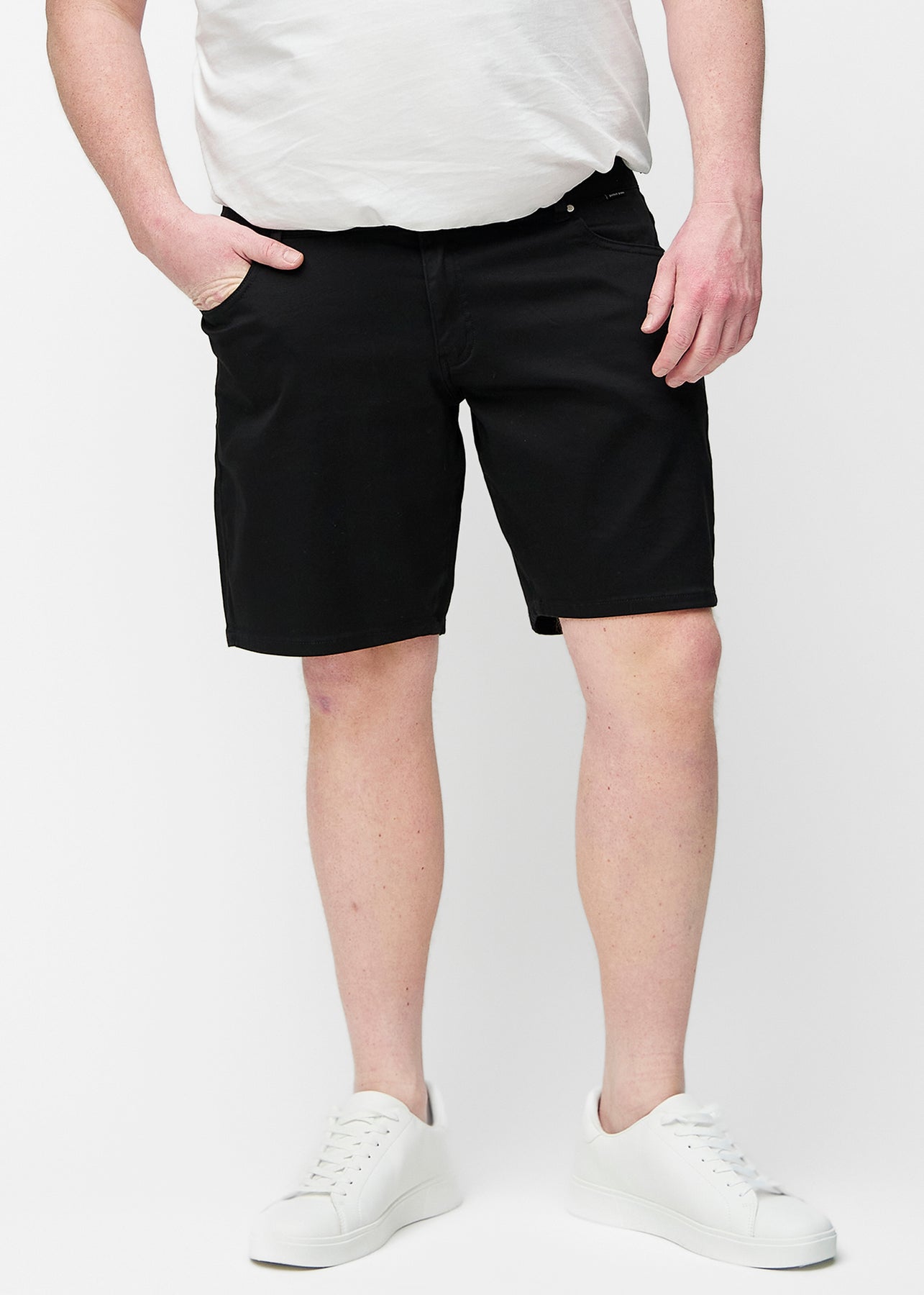 Black shorts for men in the colour Ravens with a regular fit seen from the side on a plus-size model.