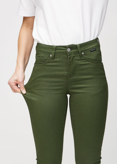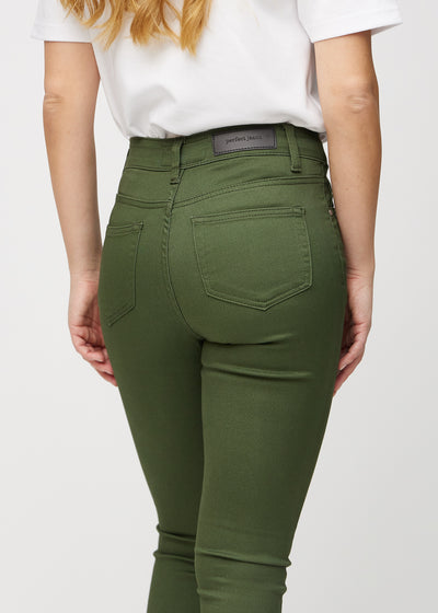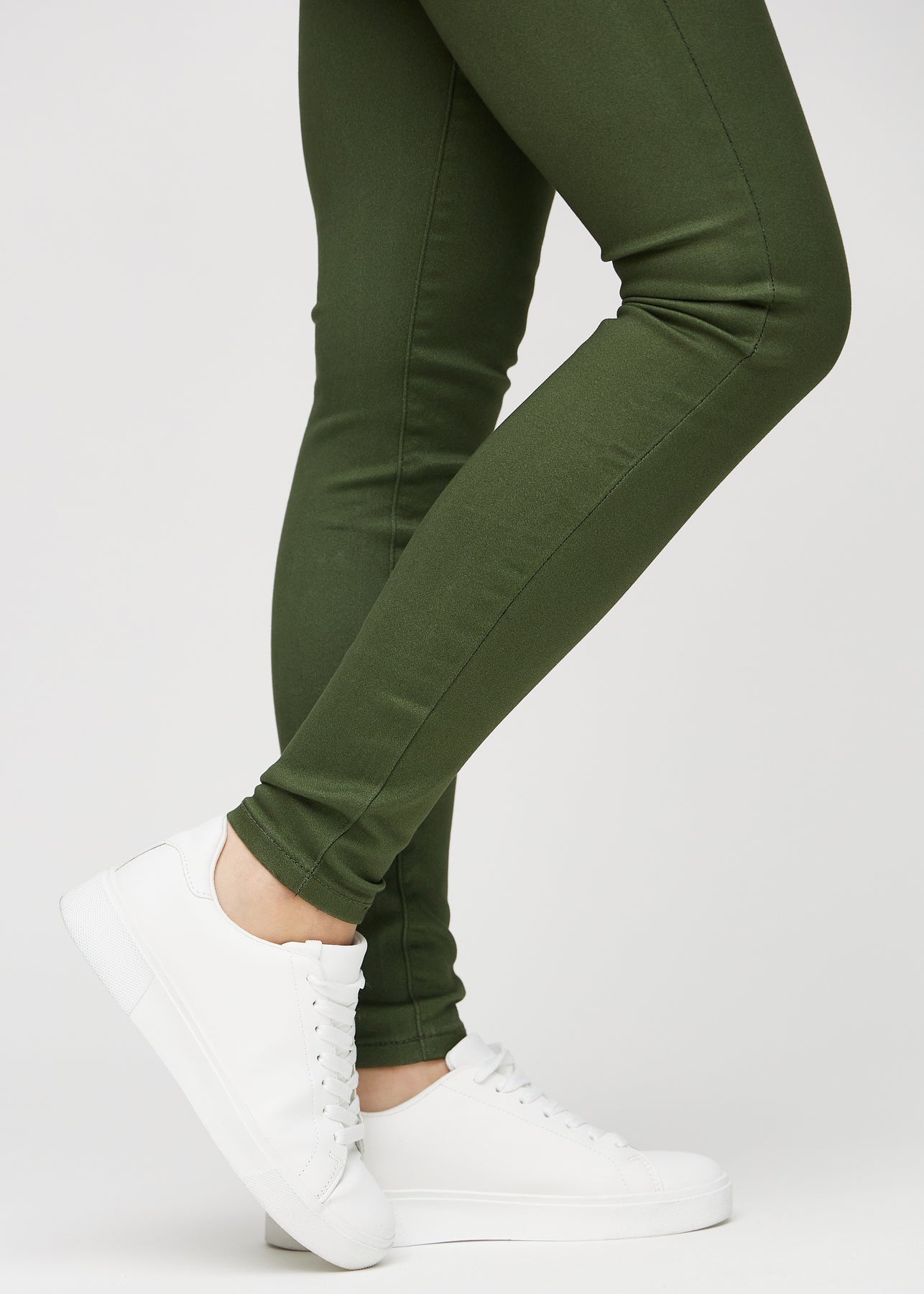 Mørkegrønne skinny jeans set bagfra, så man kan se hele produktet.