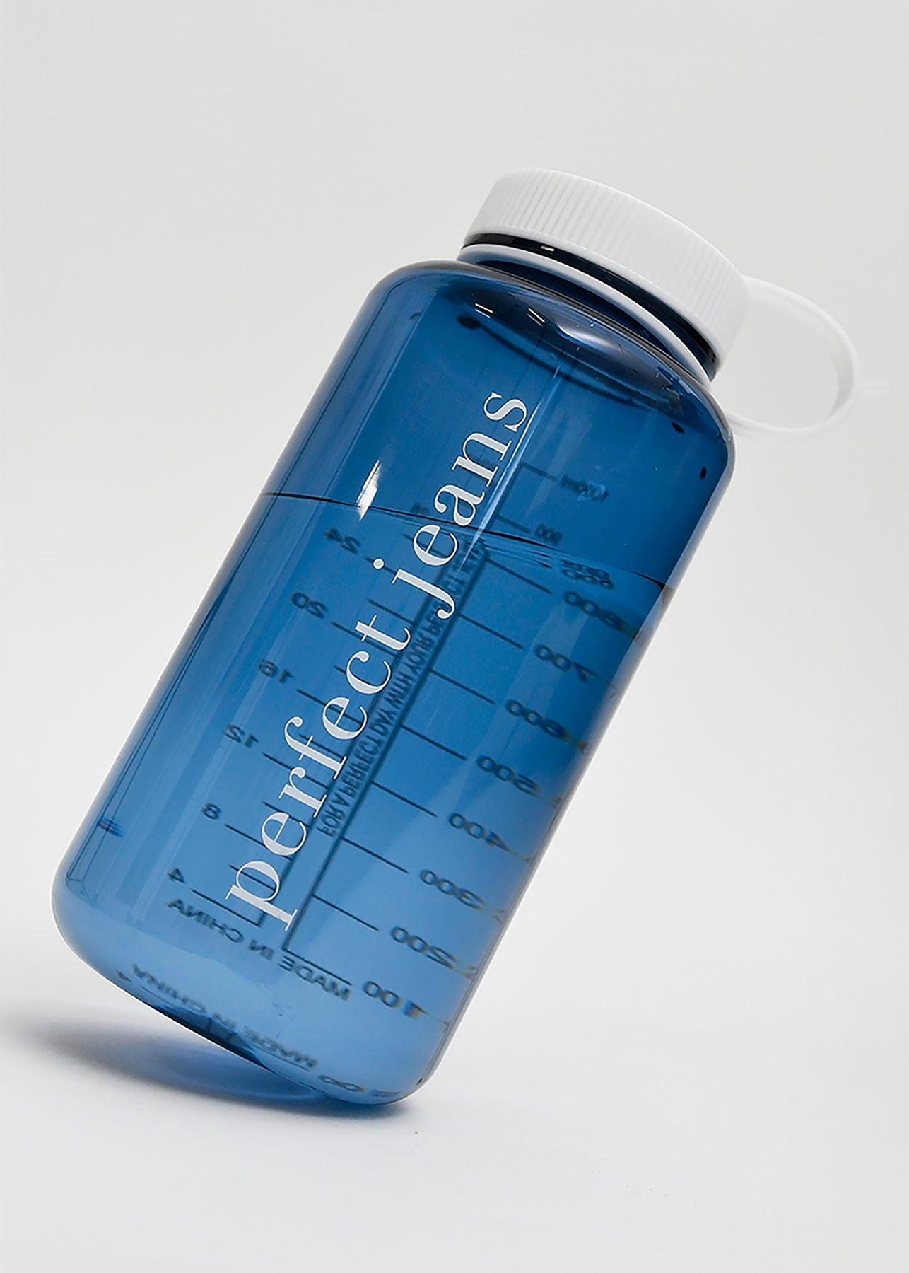 Fire forskellige varianter af blå vandflasker fra Perfect Jeans.