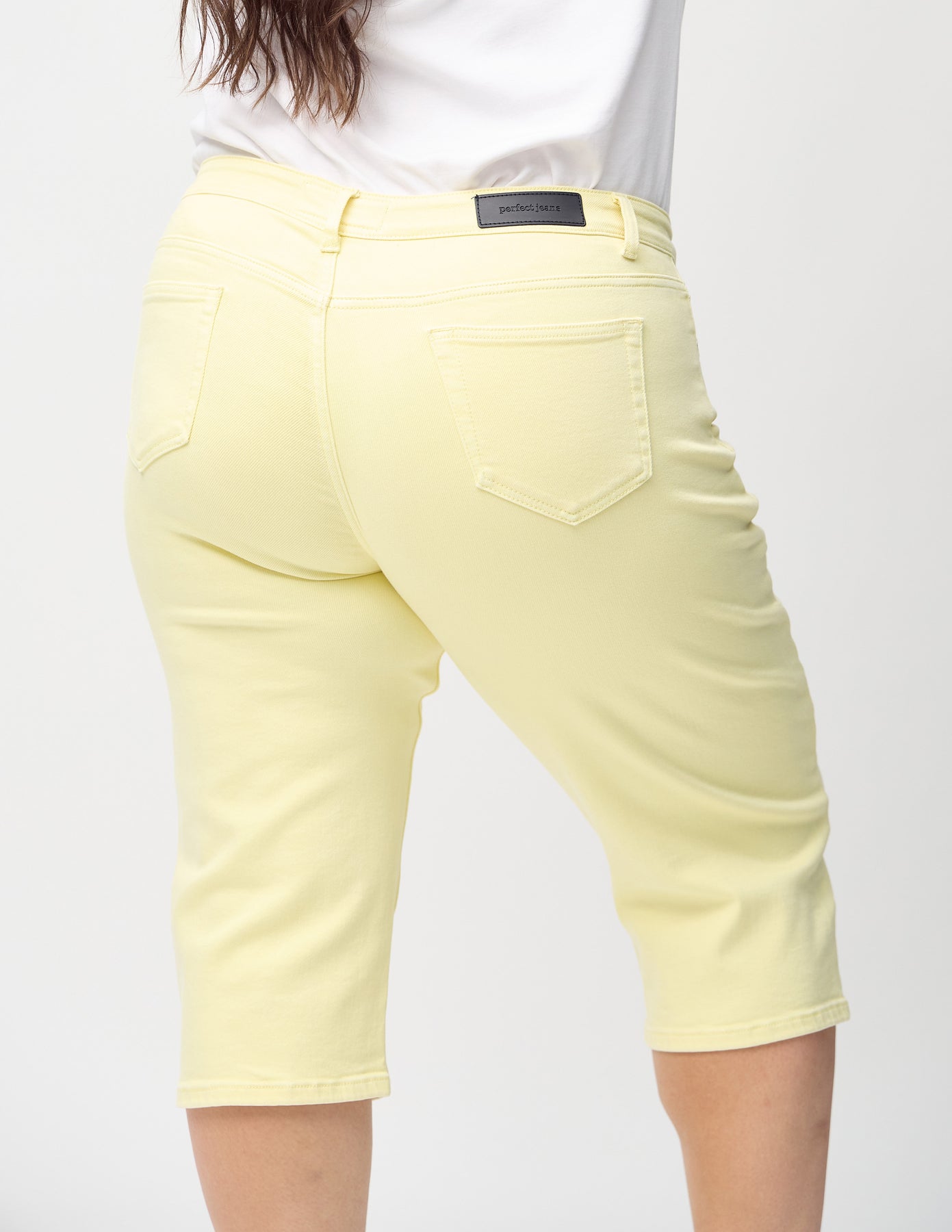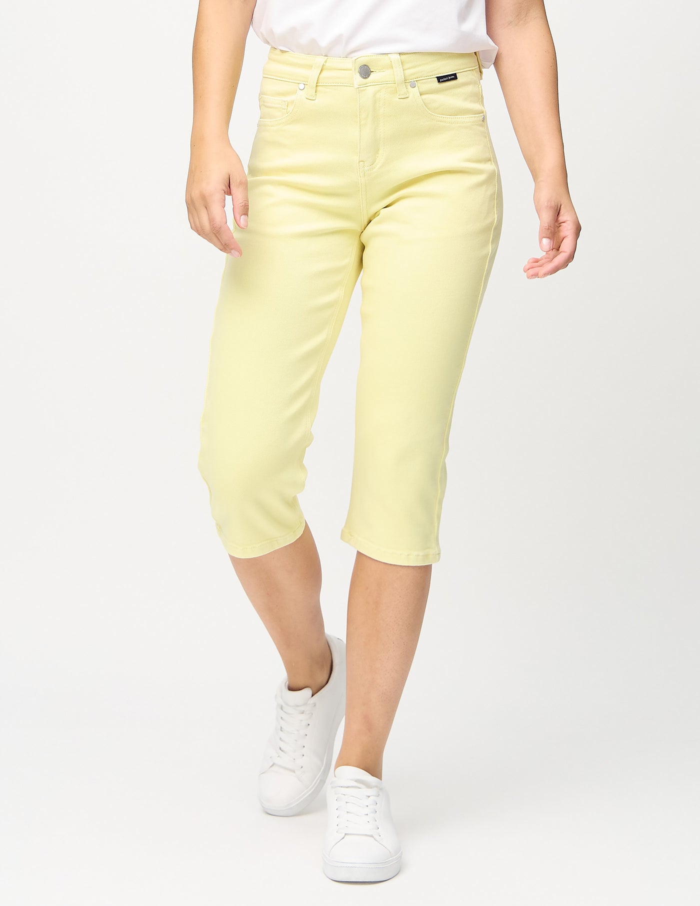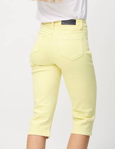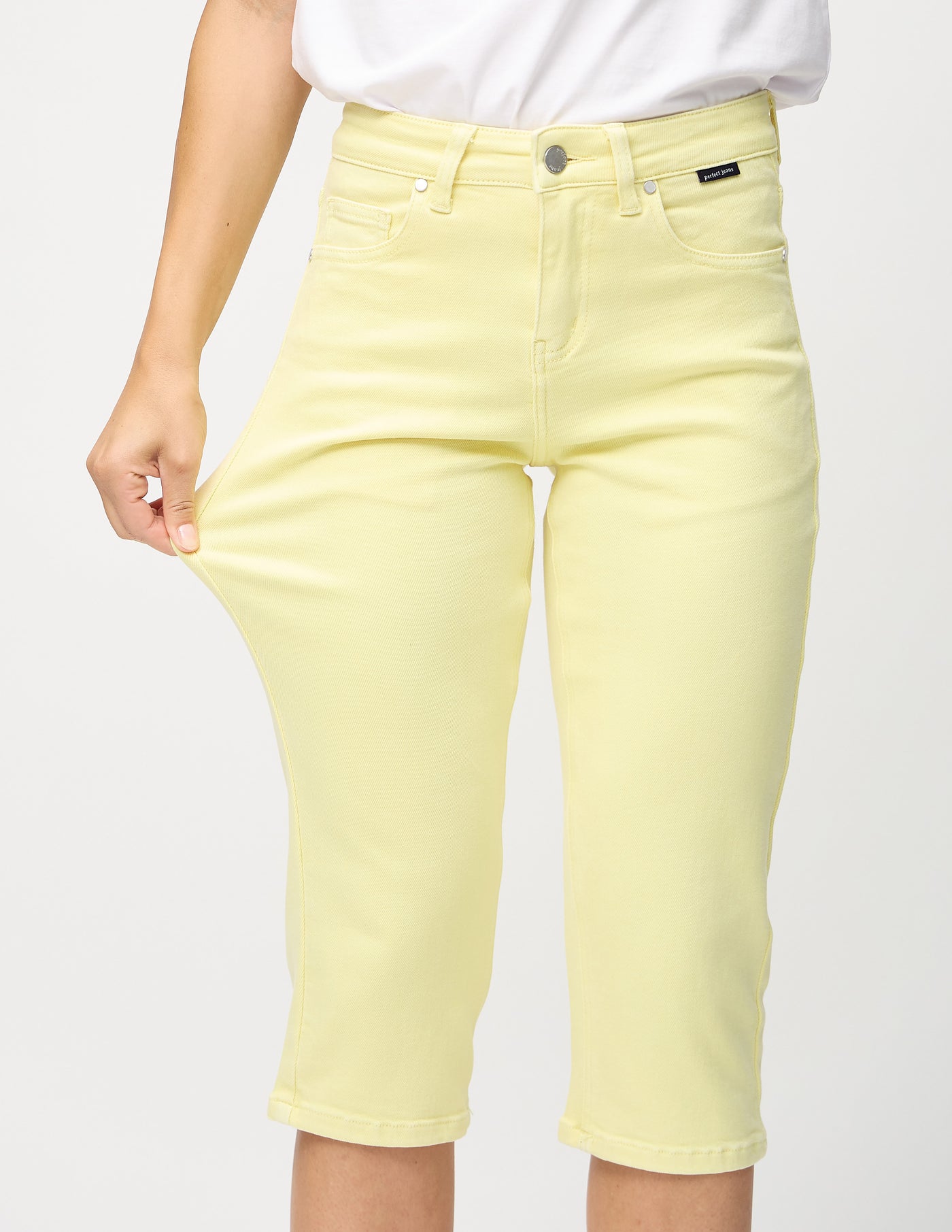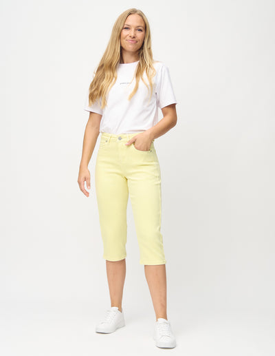 Perfect Capris - Regular - Lemonades are the perfect yellow capris for you, who are looking for a comfortable and airy ¾-length jeans. The fit is snug at the waist and hips, but looser on the thighs, so you get both comfort and freedom of movement. They are high-waisted and have two deep pockets both in the front and back. The material is soft and stretchy, making them comfortable to wear all day. The fresh yellow color remains beautiful wash after wash.