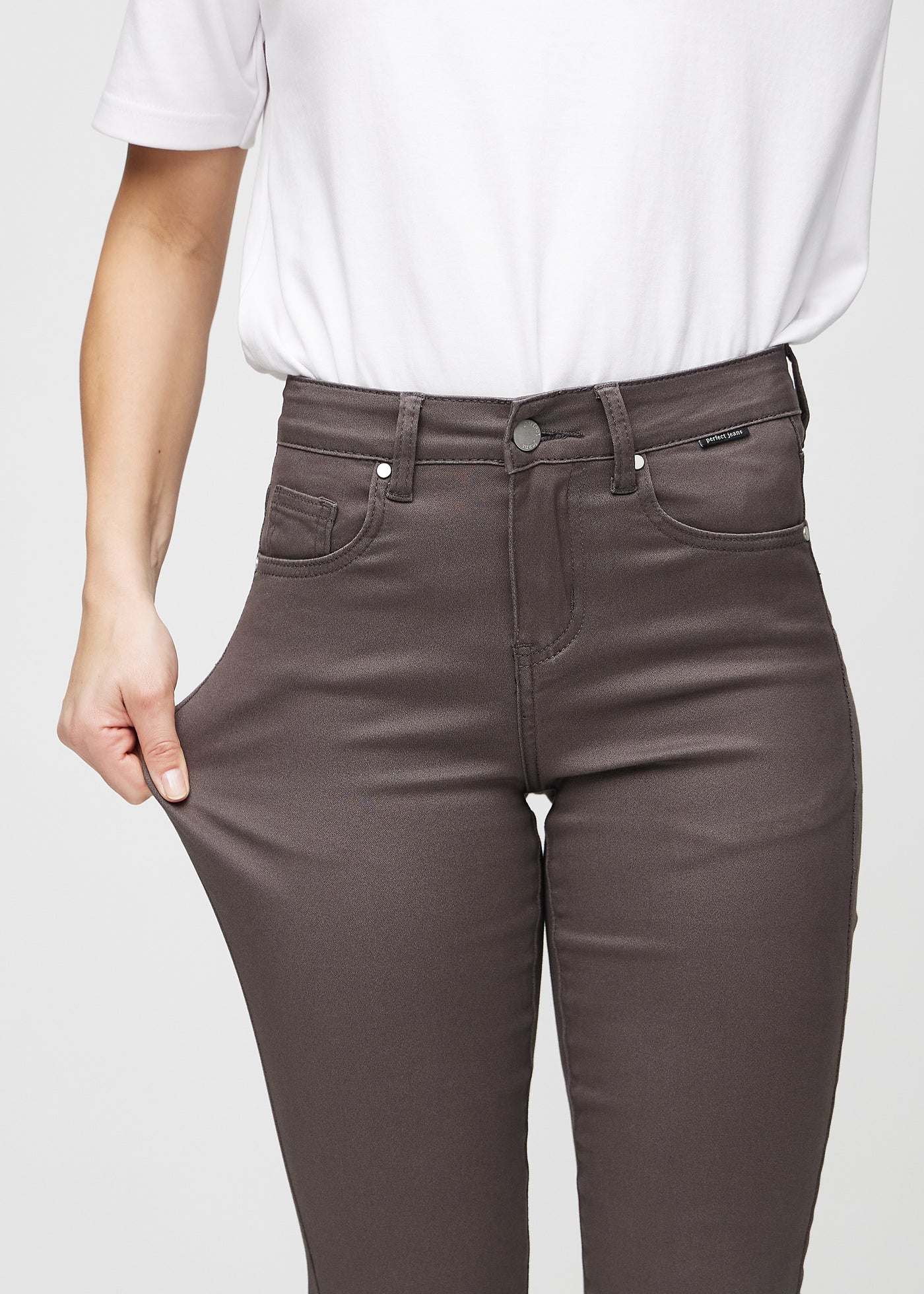 Perfect Jeans - Slim - Thunders are the perfect taupe slim fit jeans for women. The color Thunders is our beautiful gray color with a deep hue of brown, which matches any outfit and occasion. They are developed in a special material that makes them super stretchy and very comfortable. Our slim jeans for women are high-waisted and have a tight fit that accentuates your body shape. The jeans are designed to be durable and retain their color and shape after washing and use.